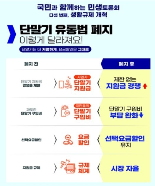 2025년, 7월 22일 단통법(이동통신 단말장치 유통구조 개선에 관한 법률)이 폐지됩니다.