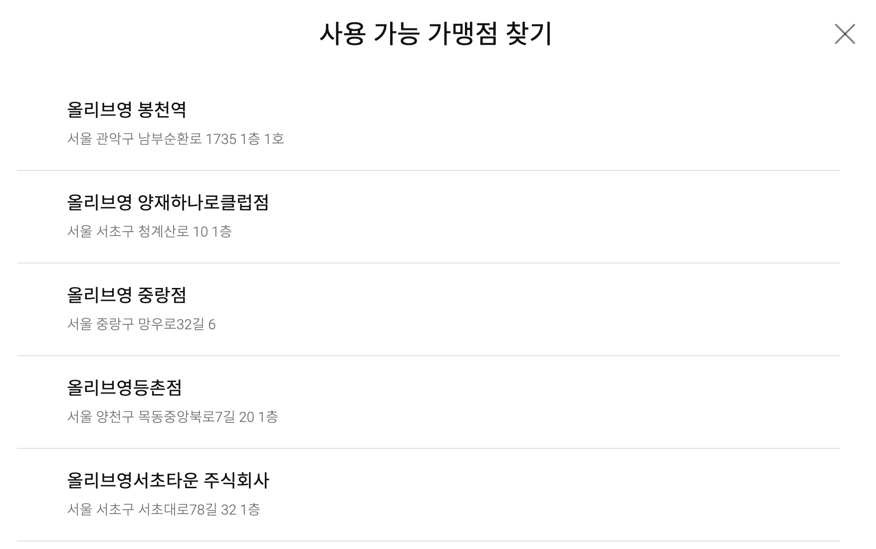 * 서울시에 위치한 소비쿠폰 사용 가능 올리브영 가맹점 리스트를 위와 같이 확인 가능합니다 :)