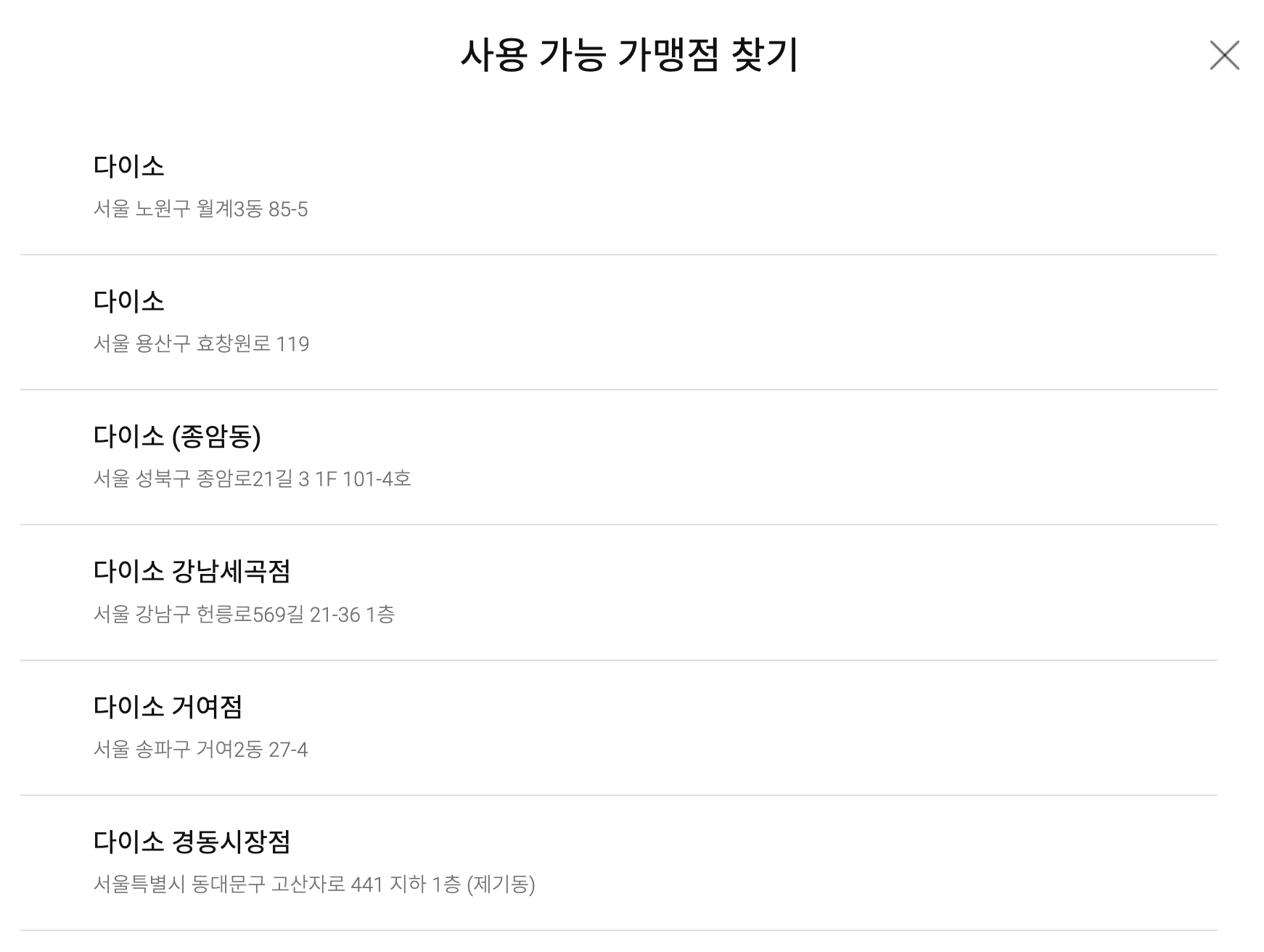 - ‘○○점’처럼 개인 사장이 운영하는 가맹점이라면 사용 가능