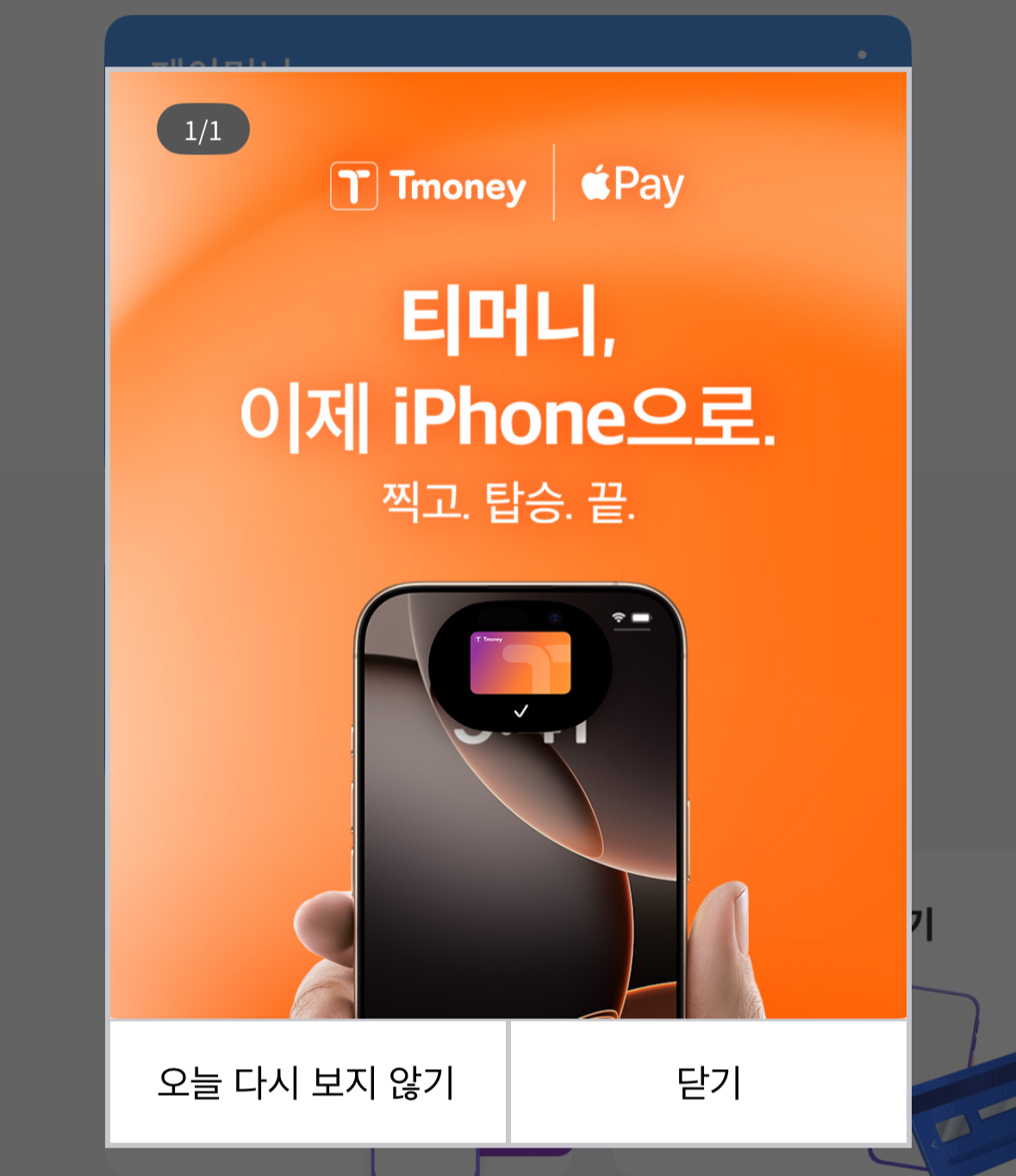 ✅가능: 선불형 티머니 충전 → 애플페이로 바로 결제
