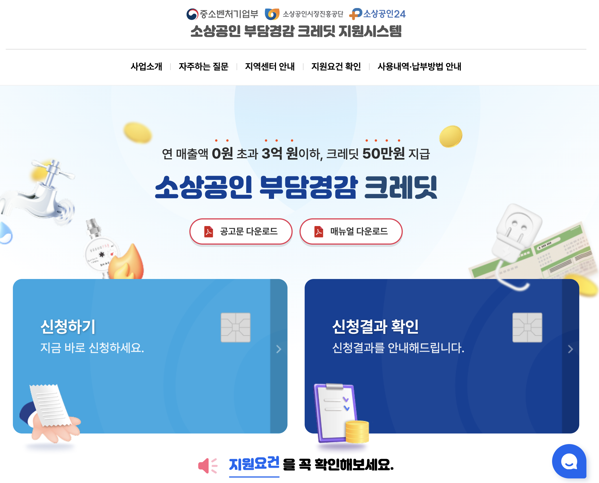 소상공인이라면 누구나 쉽게 할 수 있는 부담경감 크레딧 신청!
