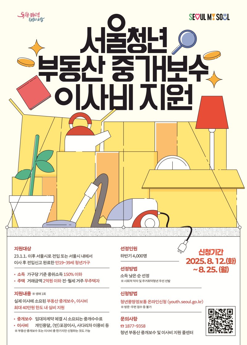 청년지원금 (서울시 청년 부동산 중개보수·이사비 지원 신청 8/25까지)